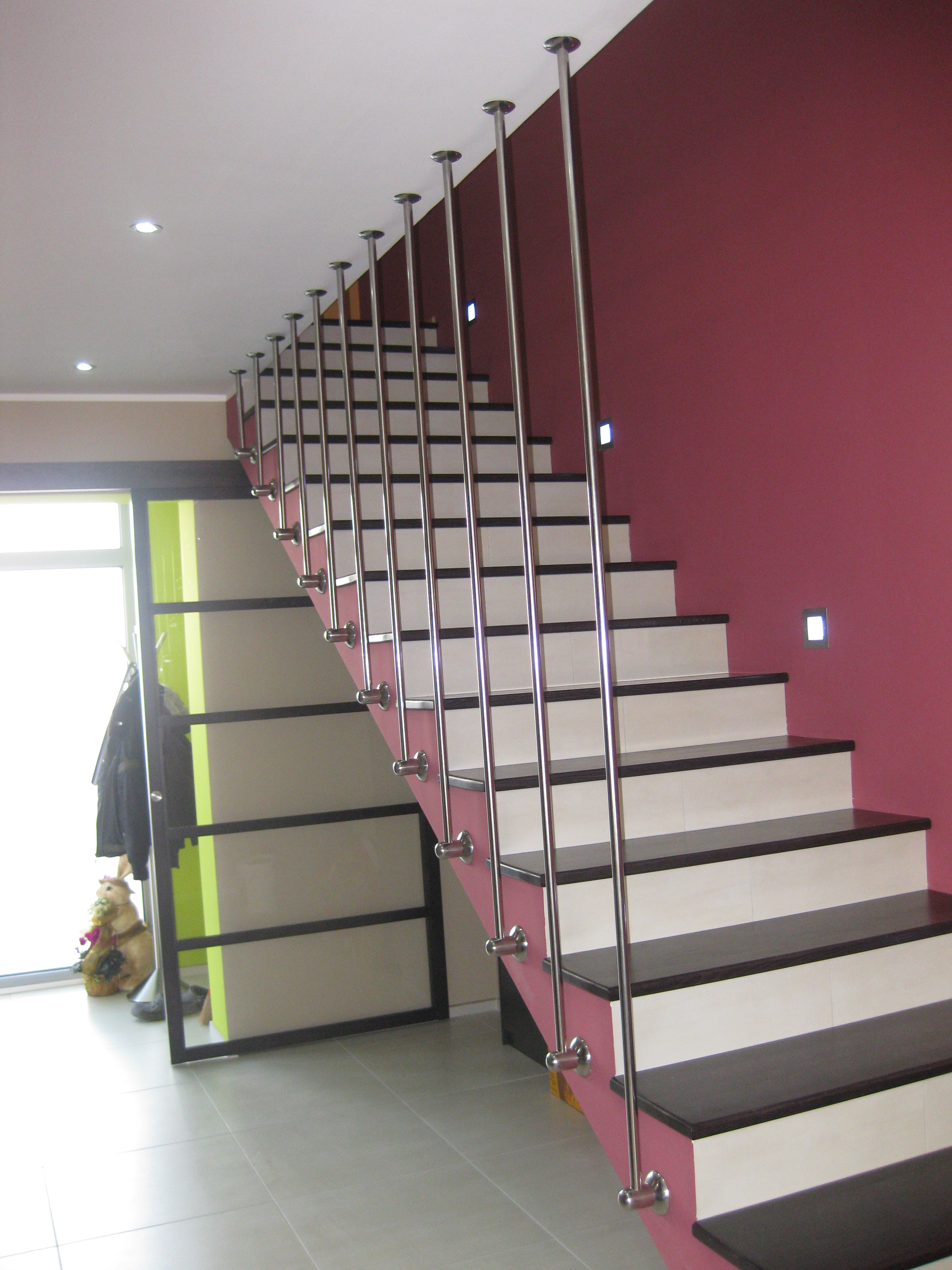 ograjo prilagodimo vsakemu stopnišču in vsaki strankini želji posebej. Možne so razne kombinacije poliranih ali brušenih nerjavnih materialov,